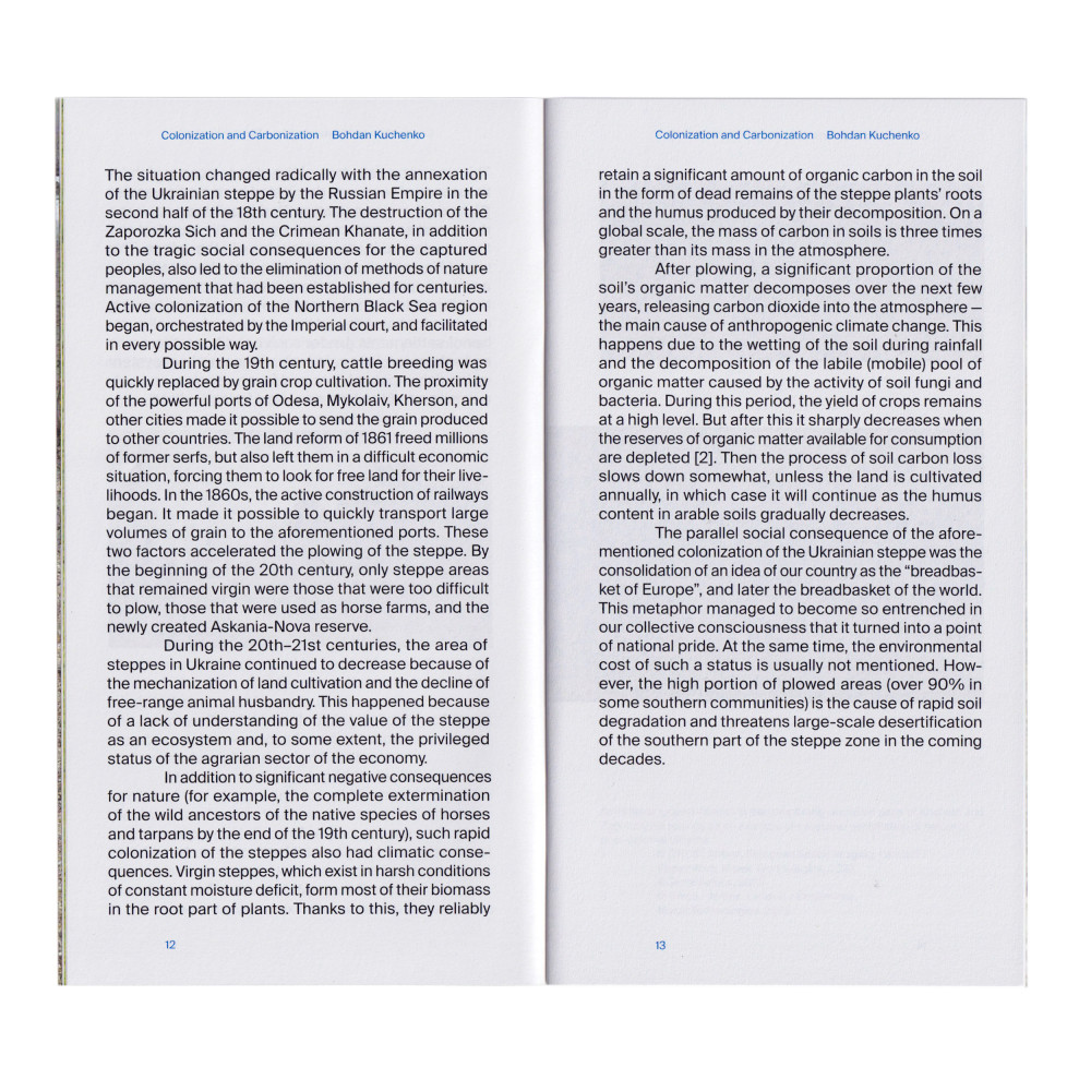 The parallel social consequence of the aforementioned colonization of the Ukrainian steppe was the consolidation of an idea of our country as the “breadbasket of Europe", and later the breadbasket of the world. This metaphor managed to become so entrenched in our collective consciousness that it turned into a point of national pride. At the same time, the environmental cost of such a status is usually not mentioned. However, the high portion of plowed areas (over 90% in some southern communities) is the cause of rapid soil degradation and threatens large-scale desertification of the southern part of the steppe zone in the coming decades.