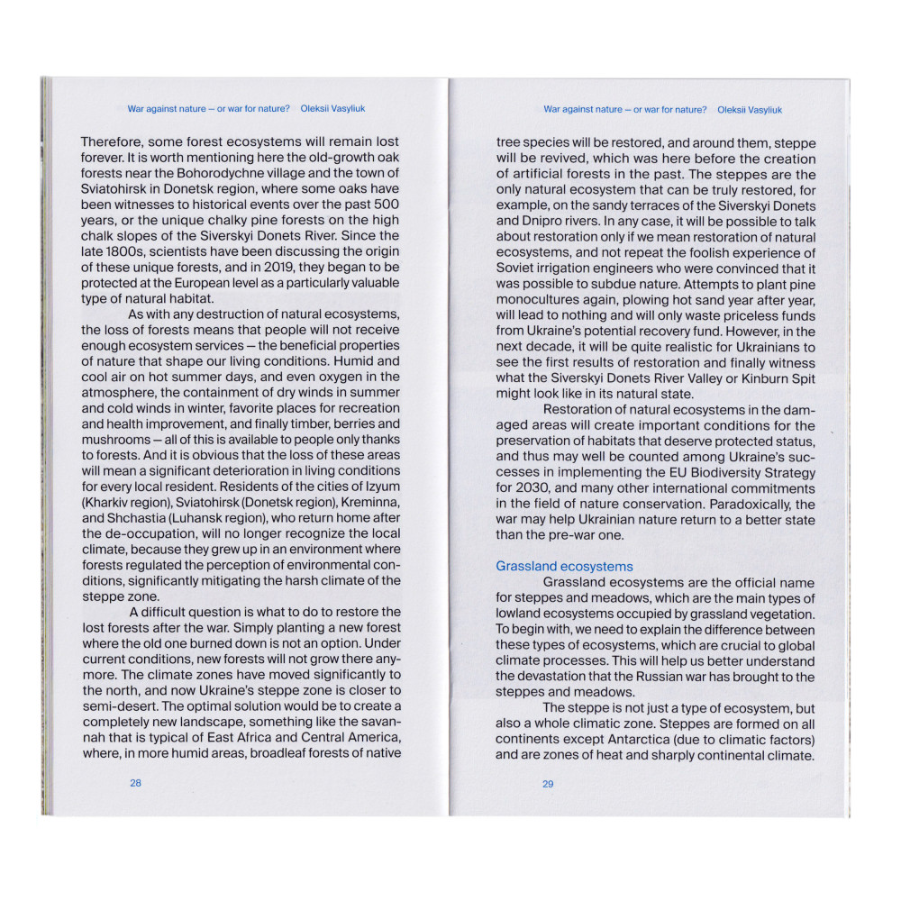 Although thinking about large-scale restoration of Ukraine’s natural ecosystems seems to be an idealistic goal at the moment, it is possible for it to be fully realized, as long as we apply modern scientific data on how these natural ecosystems function. With these ambitious ecological goals, as well as victory in the current war with russia, and confirmation of Ukrainians' right to independence, can all contribute to our chance at decolonizing our attitude towards nature.