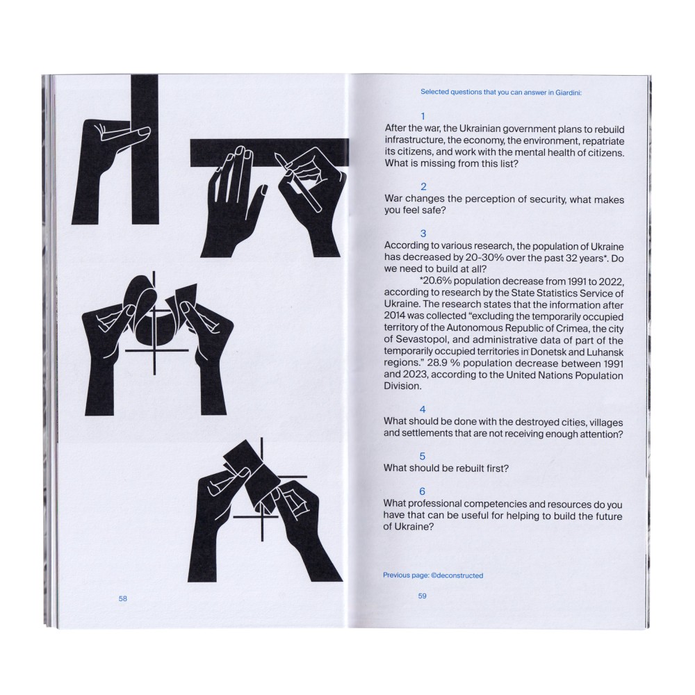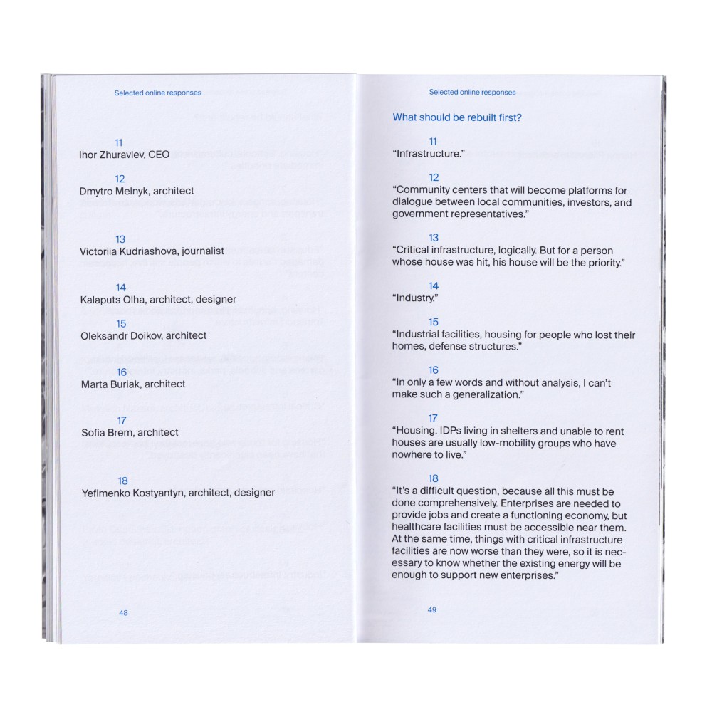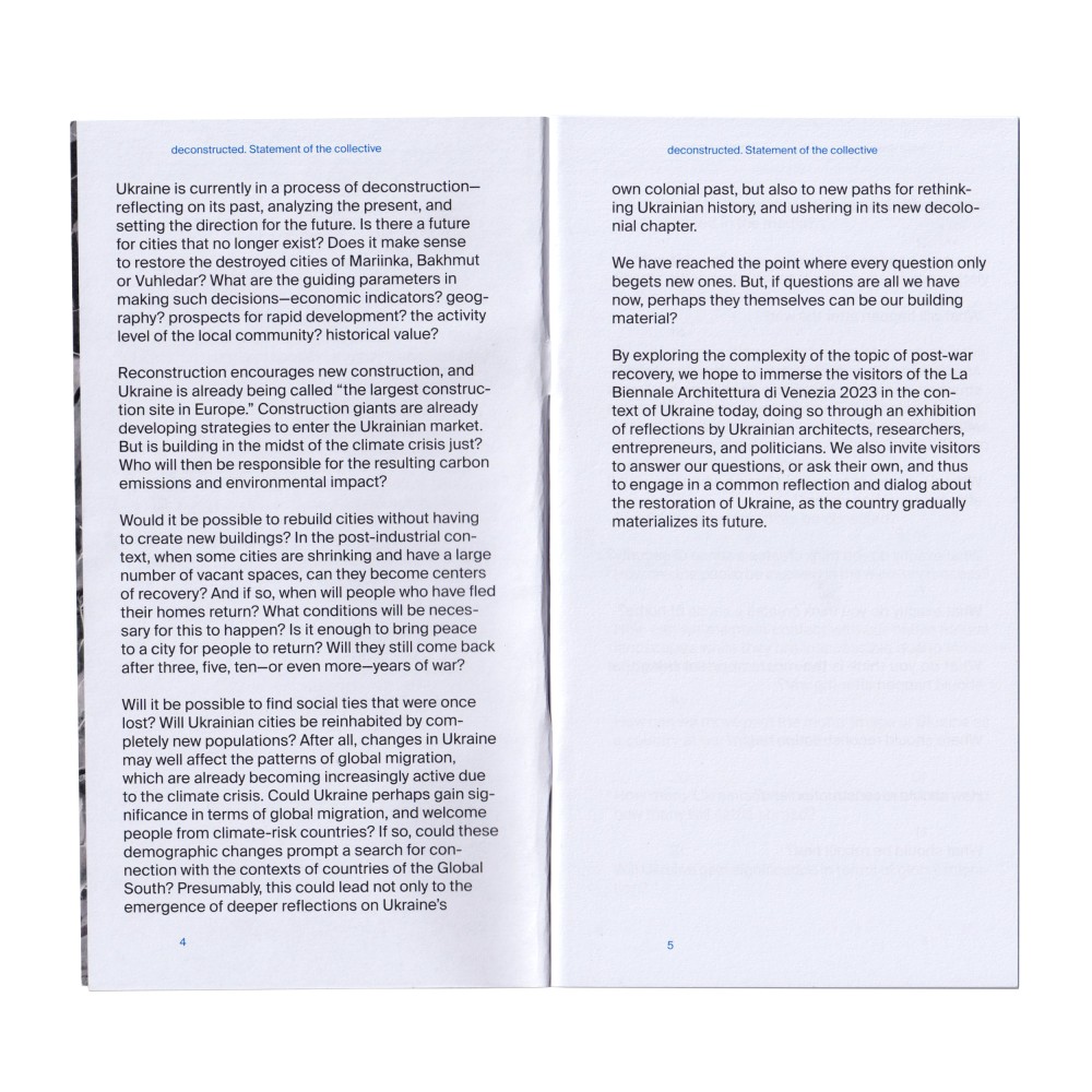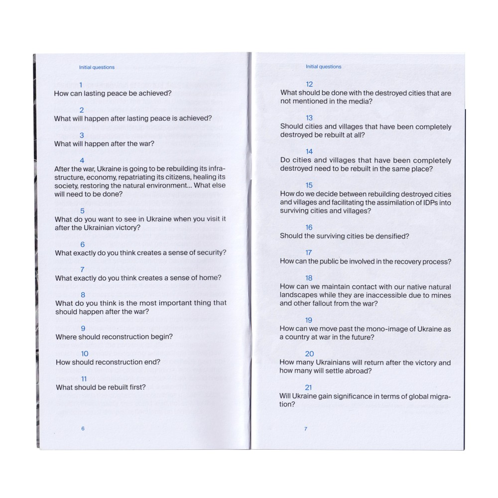 Ukraine is currently in a process of deconstruction—reflecting on its past, analyzing the present, and setting the direction for the future. Is there a future for cities that no longer exist? Does it make sense to restore Mariinka, Bakhmut or Vuhledar? What are the guiding parameters in making such decisions: economic indicators? geography? prospects for rapid development? activity level of the community? historical value? Reconstruction encourages new construction, and Ukraine is already being called "the largest construction site of Europe." Construction giants are already developing strategies to enter the Ukrainian market. But is it fair to build in the midst of the climate crisis? Who will then be responsible for carbon emissions and environmental impact? Would it be possible to rebuild cities without having to create new buildings? In the post-industrial context, when some cities are shrinking and have a large number of vacant spaces, can they become centers of recovery? And if so, when will people who have fled their homes return? What are the conditions for this? Is it enough to bring peace to a city for people to return? Will they still come back after three, five, ten—or even more—years of war? Will it be possible to find social ties that were once lost? Will Ukrainian cities be populated by completely new people? After all, changes in Ukraine may well affect the patterns of global migration, which is becoming more active due to the climate crisis. Perhaps Ukraine could gain significance in terms of global migration, and welcome people from the climate-risk countries? If so, could demographic changes in Ukraine prompt a search for connections with the context of the countries of the Global South and the emergence of a reflection on Ukraine's colonial past? And with that, a path to rethinking and the beginning of the post-colonial chapter of Ukraine's history?We have reached the point where every question only begets new ones. But, if questions are all we have now, perhaps they themselves can be our building material? By exploring the complexity of the topic of post-war recovery, we want to immerse the visitors of the La Biennale Architettura di Venezia 2023 in the context of Ukraine today through the exhibition of reflections by Ukrainian architects, entrepreneurs, and politicians and engage them in a common reflection and dialogue about reconstruction. We invite visitors to answer questions or ask their own questions, and to engage in a common reflection on the restoration of Ukraine, gradually materializing its future.